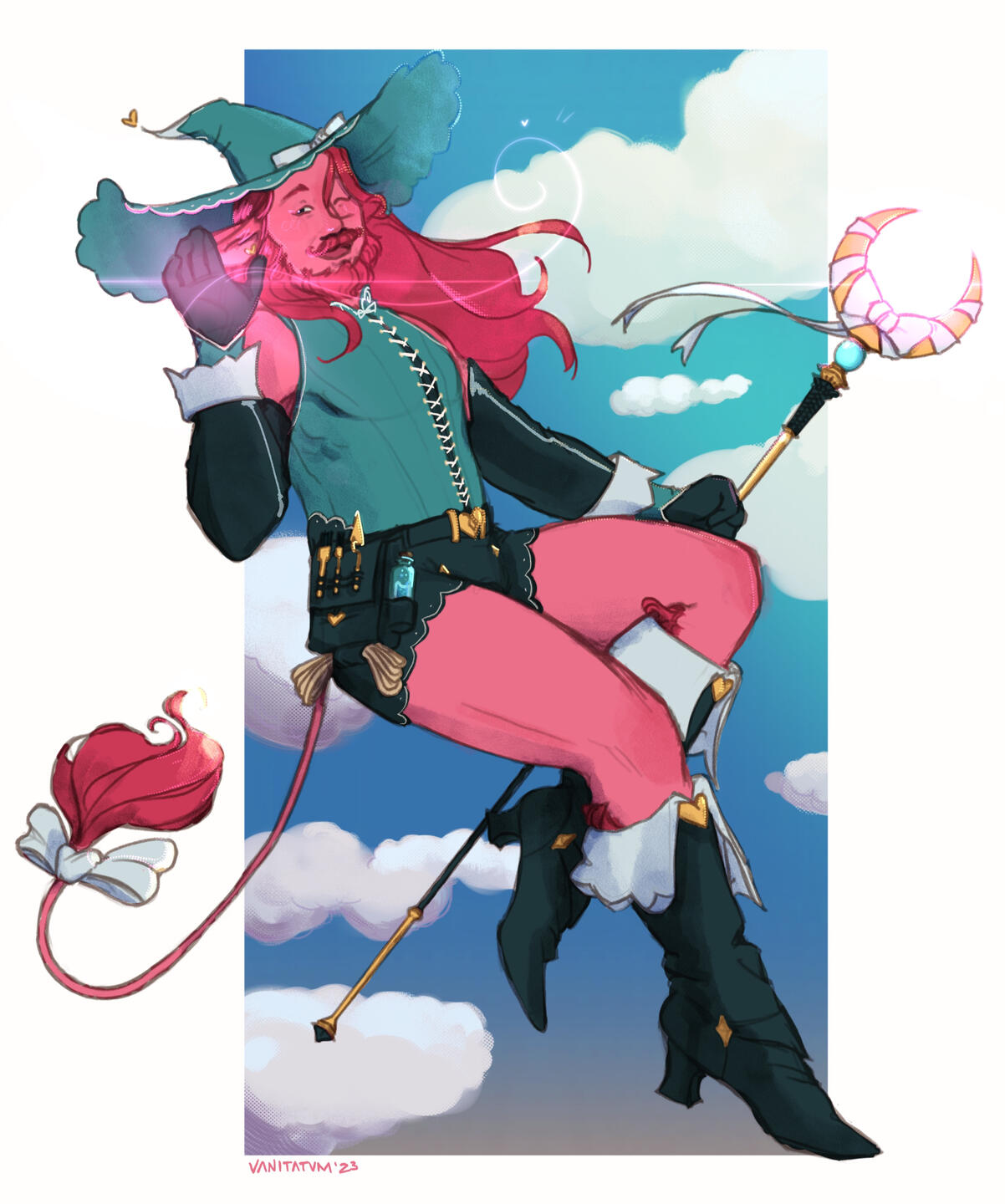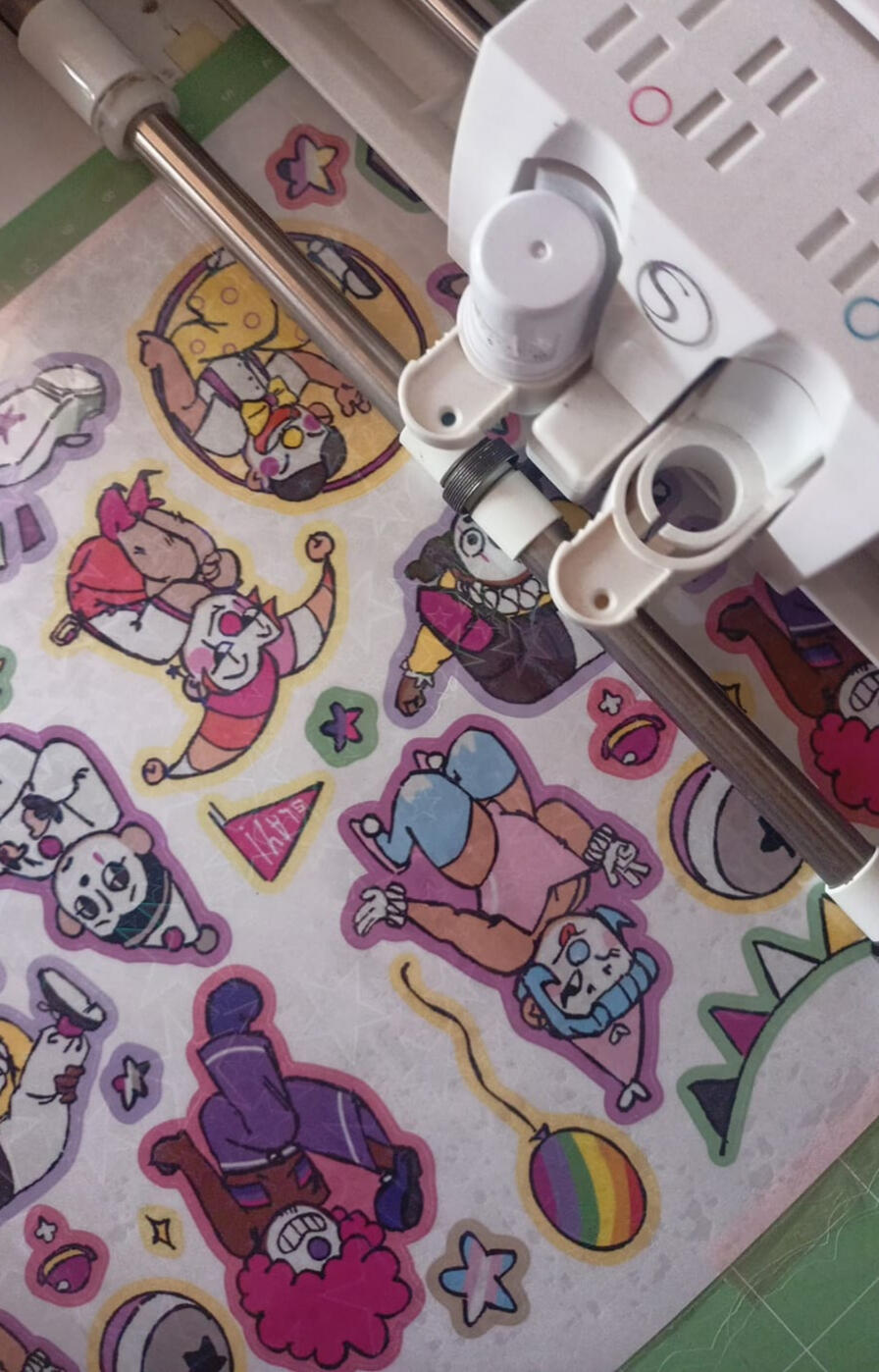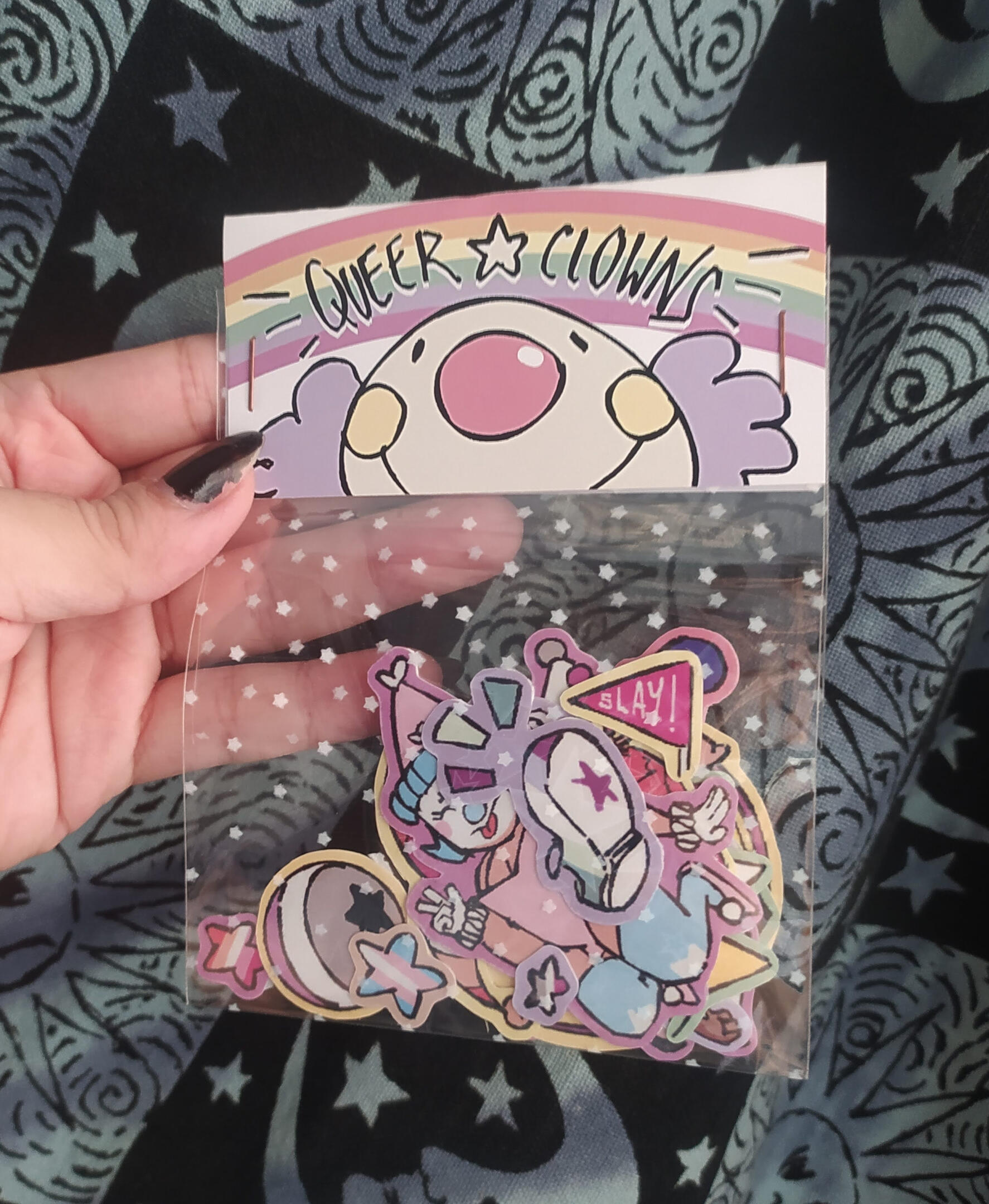 A colorful group of clows wearing their most proud colors! I wanted to make something original, eye-catching and cute to put all my knowledge to test, and my first attempt on packaging.The result was a sticker pack with 6 different clowns wearing their respective pride flags in their clothes among other funny circus-related elements.They fly but if they're available, it's in here ✸