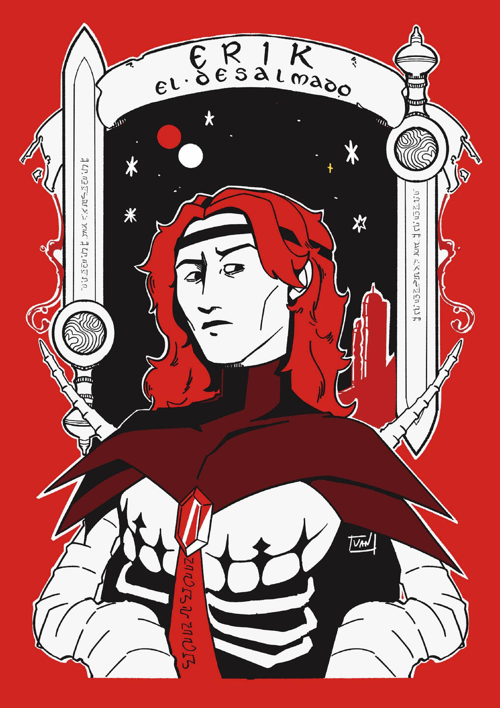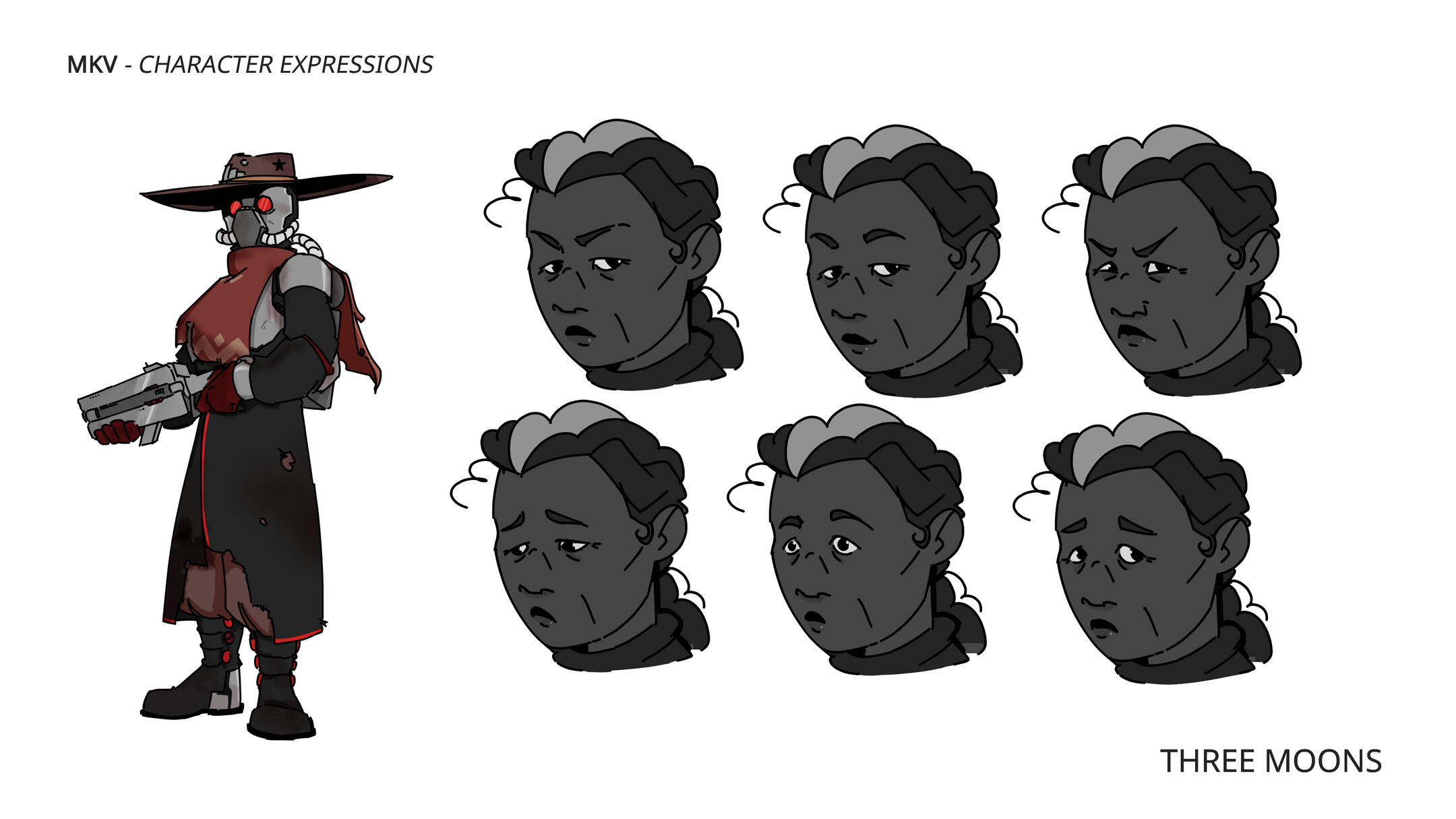 MKV is a war veteran who acts like a self-proclaimed sheriff. She tries to keep peace in this blue, stormy planet to cope with her complex past. No one has ever seen her below her armor, and takes advantage of that, as humans don't have the best reputation after ruling the galaxy with an iron fist.